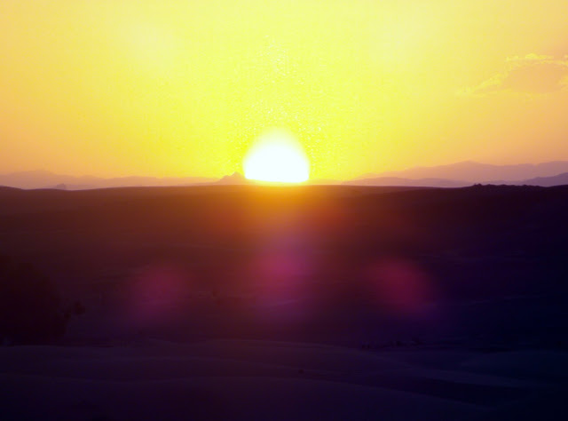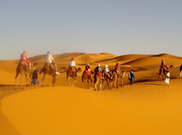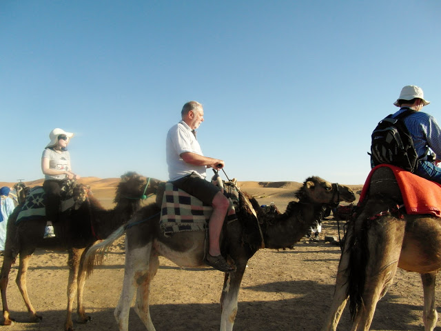 This evening we were taken by Land Cruiser out into the Sahara, out where the big dunes are, this took around an hour and I think the drivers had been watching the Paris Dakar rally. We were soon spread across the dessert and bumping our way to our destination, some camels which would take us into the dunes for the sunset. Although I had seen better sunsets this was a truly remarkable experience and I would rate it as one of my most memorable.