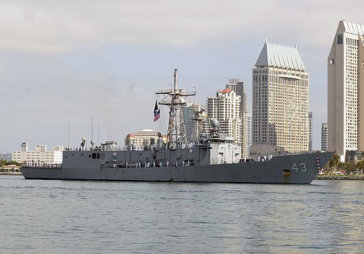 The Oliver Hazard Perry-class guided-missile frigate USS Thach (FFG 43) was decommissioned after more than 29 years of naval service during a ceremony on board Naval Base San Diego, Nov. 1.The ship was named for Naval aviator Adm. John S. Thatch, the developer of the “Thach Weave” dogfighting tactic in World War II and former Commander, U.S. Naval Forces Europe from 1965-1967. He died in 1981 and the ship was commissioned into service March 17, 1984. Several of the ship’s plankowners and dozens of former crew members, as well as many members of the Thach family, attended the ceremony alongside current crew members.
