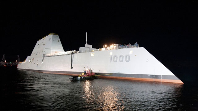 The ship—which resembles a sleek, ice-white iceberg (see photo on U.S. Navy’s website)—is “the first of three Zumwalt-class destroyers, [and] will provide independent forward presence and deterrence, support special operations forces and operate as part of joint and combined expeditionary forces,” according to the Navy’s website.