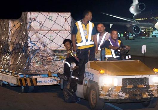 A KDC-10 transport aircraft of the Royal Netherlands Air Force delivered 29 tonnes of aid to the city of Cebu in the Philippines last week.The aid, made available by the affiliated aid organisations in the Netherlands (SHO), is intended for the thousands of victims of the destructive force of typhoon Haiyan. The Defence organisation carried out the flight at the request of the Dutch government. After a stop in Mumbai, India, the valuable medical kits, tarpaulins, jerry cans and lamps arrived at Mactan-Cebu international airport.