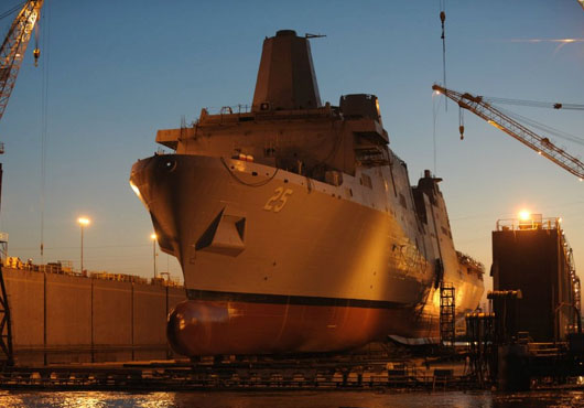 General Dynamics National Steel and Shipbuilding Co.(NASSCO) has received a $12.1 million worth contract modification to exercise the option for the fitting-out availability of San Antonio-class amphibious transport dock, the USS Somerset (LPD 25).The contract includes engineering, planning, management, labor and material in support of the fitting-out availability. Work will be performed in San Diego, Calif., and is expected to be completed by December 2014. Huntington Ingalls Industries’ Ingalls Shipbuilding division delivered the amphibious transport dock Somerset (LPD 25) to the U.S. Navy on October 18th. The DD 250 document officially signifying custody transfer of the ship was signed by officials on the ship at the company’s Avondale facility. The 24,900-ton Somerset is 684 feet in length, has an overall beam of 105 feet, and a navigational draft of 23 feet. Four turbo-charged diesels power the ship to sustained speeds of 22 knots. The LPD incorporates both a flight deck to accommodate CH-46 helicopters and MV-22 Osprey tilt-rotor aircraft, and a well deck that can launch and recover landing craft and amphibious vehicles. Somerset will provide improved warfighting capabilities, including an advanced command-and-control suite, increased lift-capability in vehicle and cargo-carrying capacity and advanced ship-survivability features. The ship is capable of embarking a landing force of up to 800 Marines. Somerset is the ninth ship in the San Antonio (LPD 17) class of ships, slated to commission into service with the US Atlantic Fleet in 2014. |