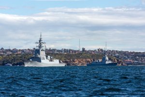 | HMAS Sydney and HMAS Brisbane depart Fleet Base East to conduct Aegis systems training off Sydney Heads. |
