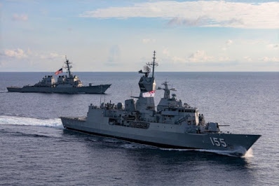 The Royal Australian Navy Anzac-class frigate HMAS Ballarat (FFH 155) performs divisional tactics with the Arleigh Burke-class guided-missile destroyer USS John S. McCain (DDG 56) while conducting integrated operations. USS McCain is assigned to Destroyer Squadron Fifteen (DESRON 15), the Navy’s largest forward-deployed DESRON and the U.S. 7th Fleet’s principal surface force.