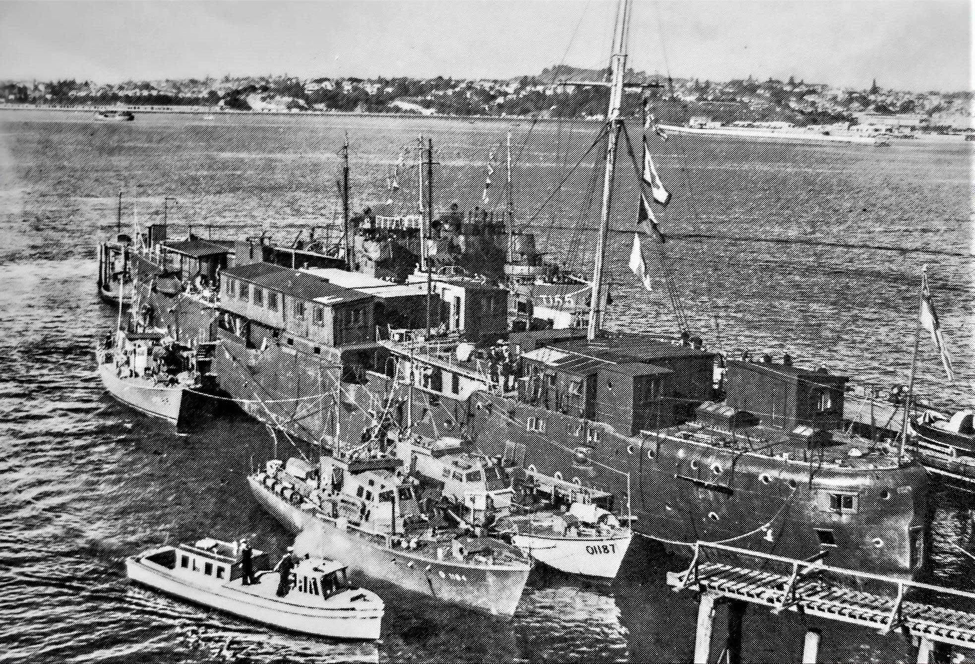 The ML to right (Tarapunga Q1187) is inboard of Q1184 (Paea). All three ML’s alongside HMNZS Philomel. Images from 1943 – 1945.