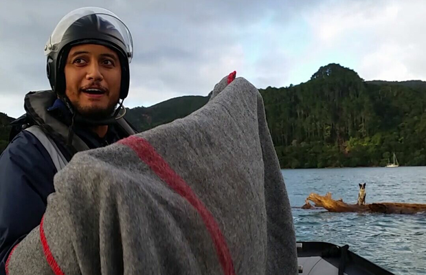 | A dog which had been washed out to sea was rescued by the Navy, following this week’s wild storm. | Crew from the Royal New Zealand Navy Inshore Patrol Vessel HMNZS Hawea spotted the distressed dog floating on a log in Smokehouse Bay, Great Barrier Island, yesterday. |