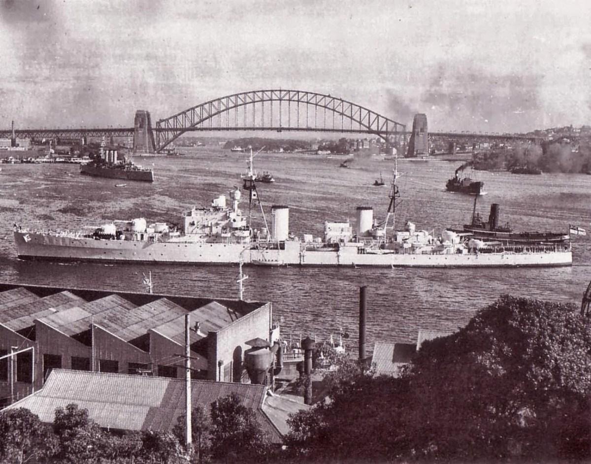 | HMNZS Black Prince in Sydney in the early 1950s: HMAS Australia can be seen just beyond at Farm Cove. |