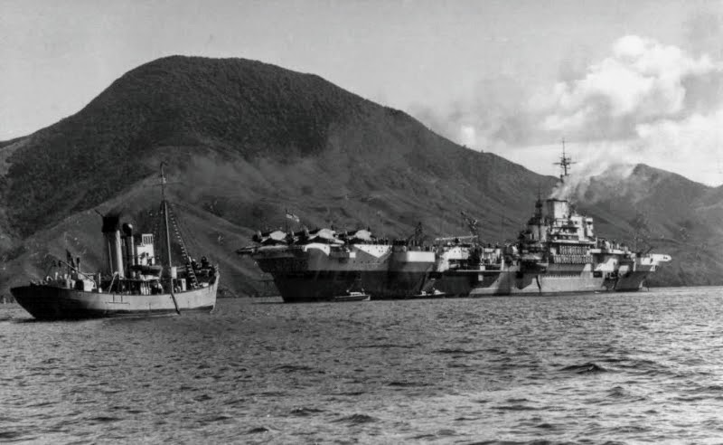 | HMNZS Maimai with HMS Indefatigable in the Marlborough Sounds – 1945 |