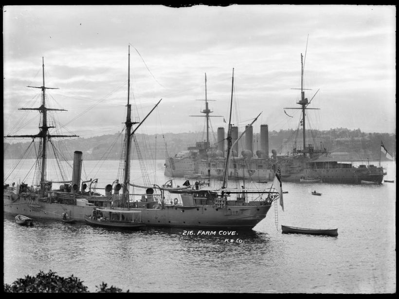 | HMS ‘Torch’ and armoured cruiser HMS ‘Euryalus’, Farm Cove, Sydney, 1904-1905, |