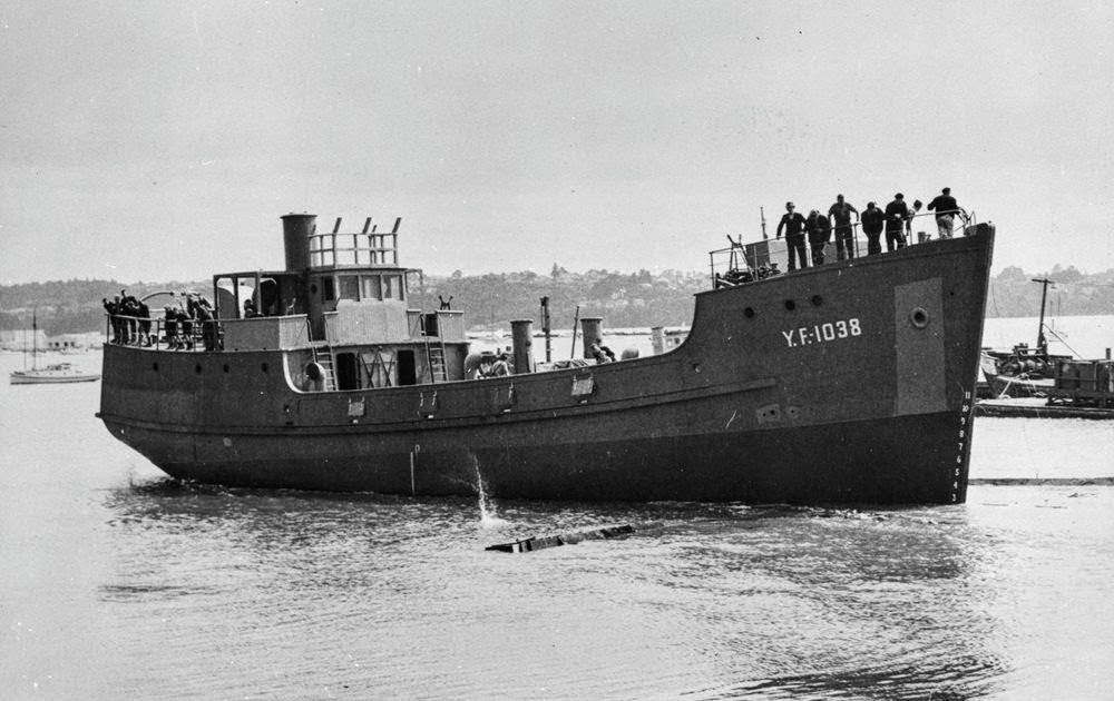 YF-1038 shortly after launch, 07 October 1944. Later HMNZS Isa Lei