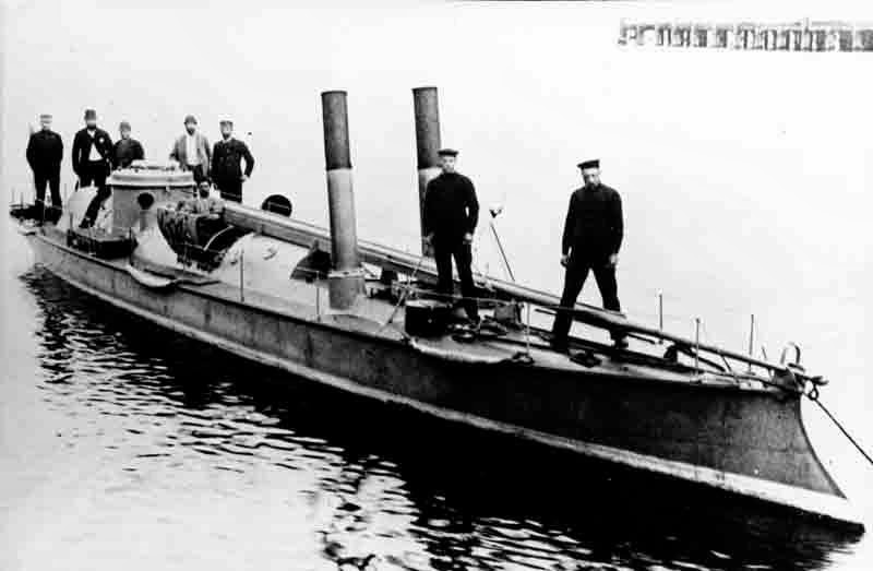 A Defender-class torpedo boat, clearly showing the spar torpedo