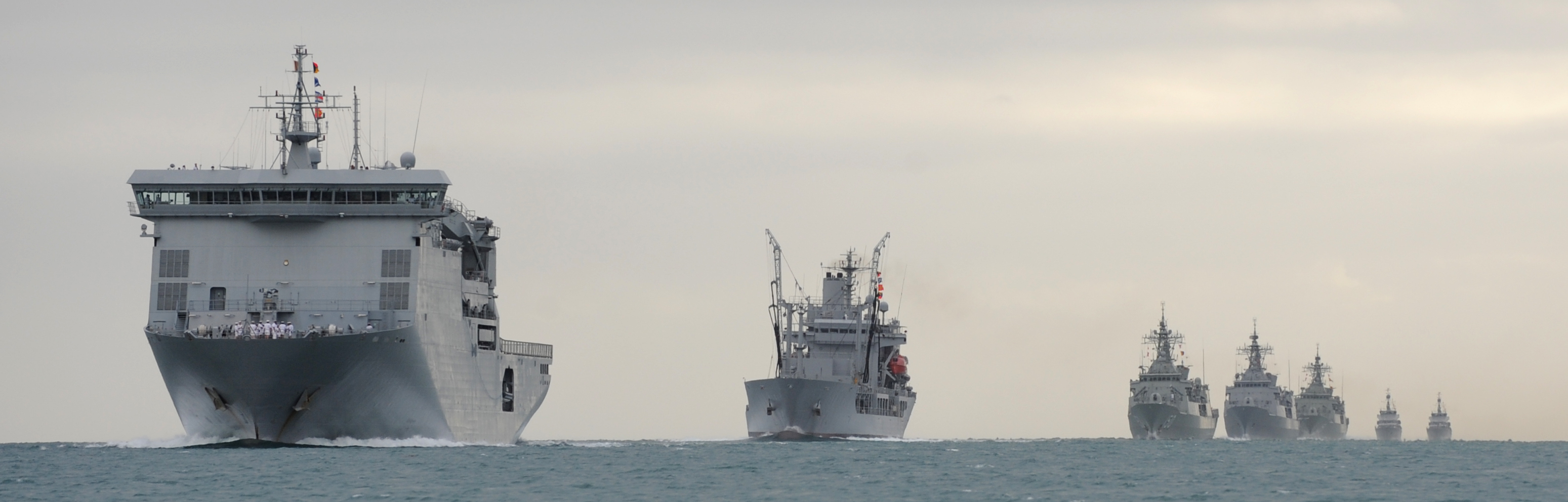 | Ships from left to right HMNZS CANTERBURY, HMNZS ENDEAVOUR, HMAS ARUNTA, HMAS ANZAC, HMNZS TE KAHA, HMNZS HAWEA, and HMNZS TAUPO. |