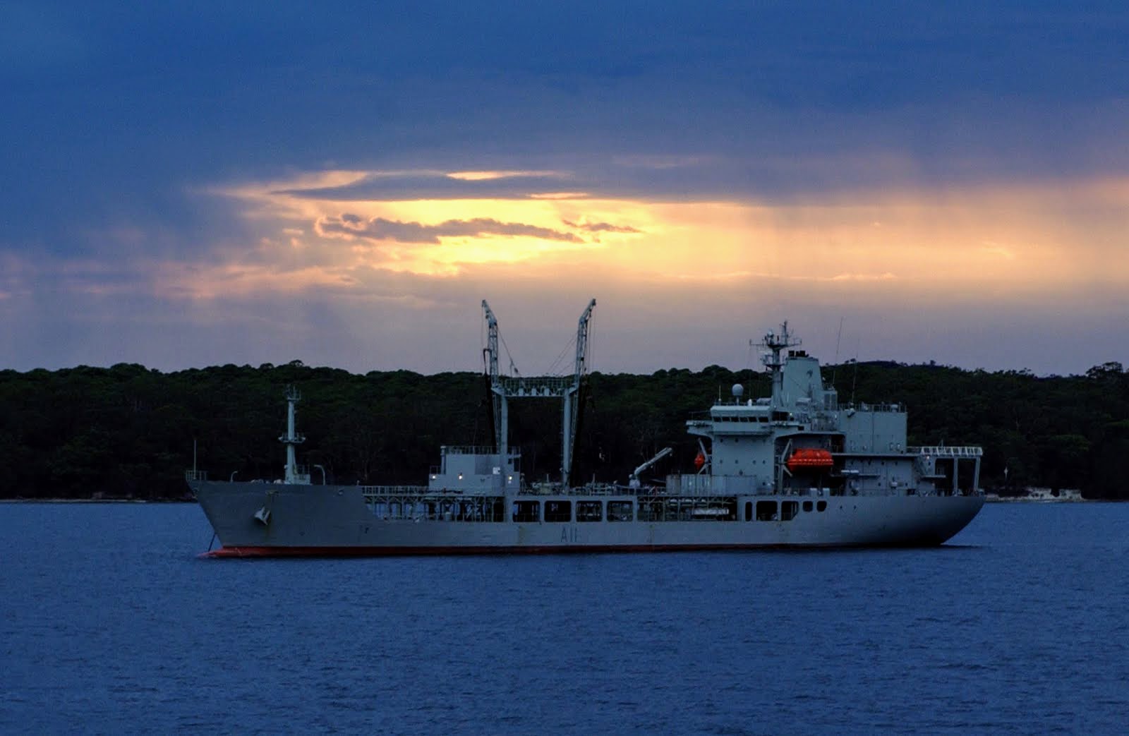 | HMNZS Endeavour at anchor in Jervis Bay, New South Wales, during Exercise Ocean Protector. |