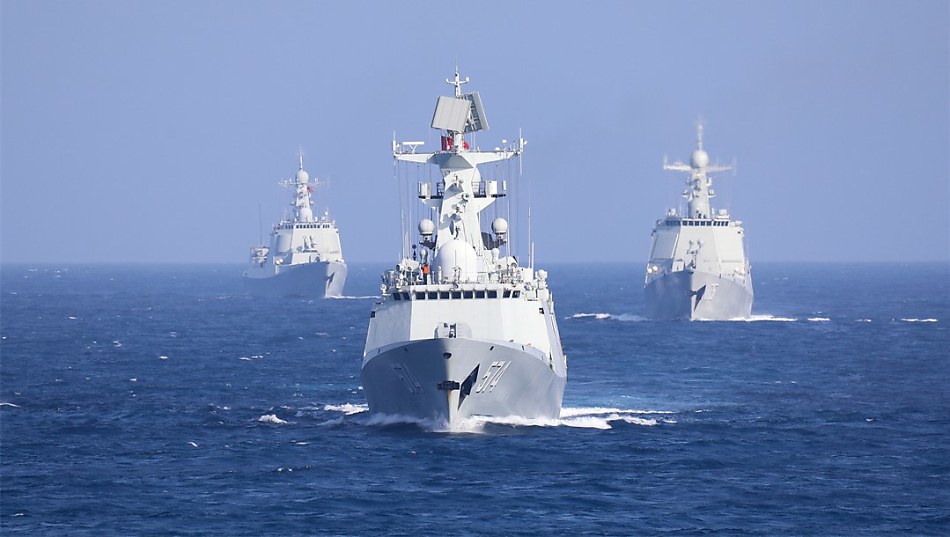 Vessels attached to a destroyer flotilla with the navy under the PLA Southern Theater Command sail in formation during a real-combat training exercise in late January, 2024. Photo: Wen Bin and Yang Yunxiang.