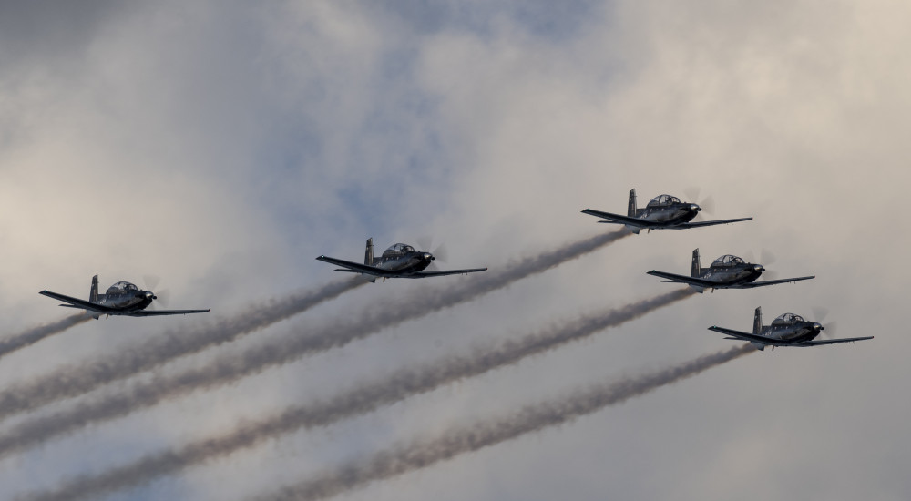 The five-strong team, flying the T-6C Texan II aircraft, will put on a full display above New Plymouth at midday on Saturday, followed by a flypast of Hawera’s Egmont A&P Show at 12.30pm.