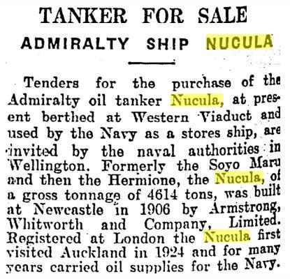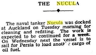 24 July 1924 the New Zealand Government budget presented to the New Zealand parliament recorded the fee for the hire of the Nucula charged by the Admiralty was £16,500 per annum