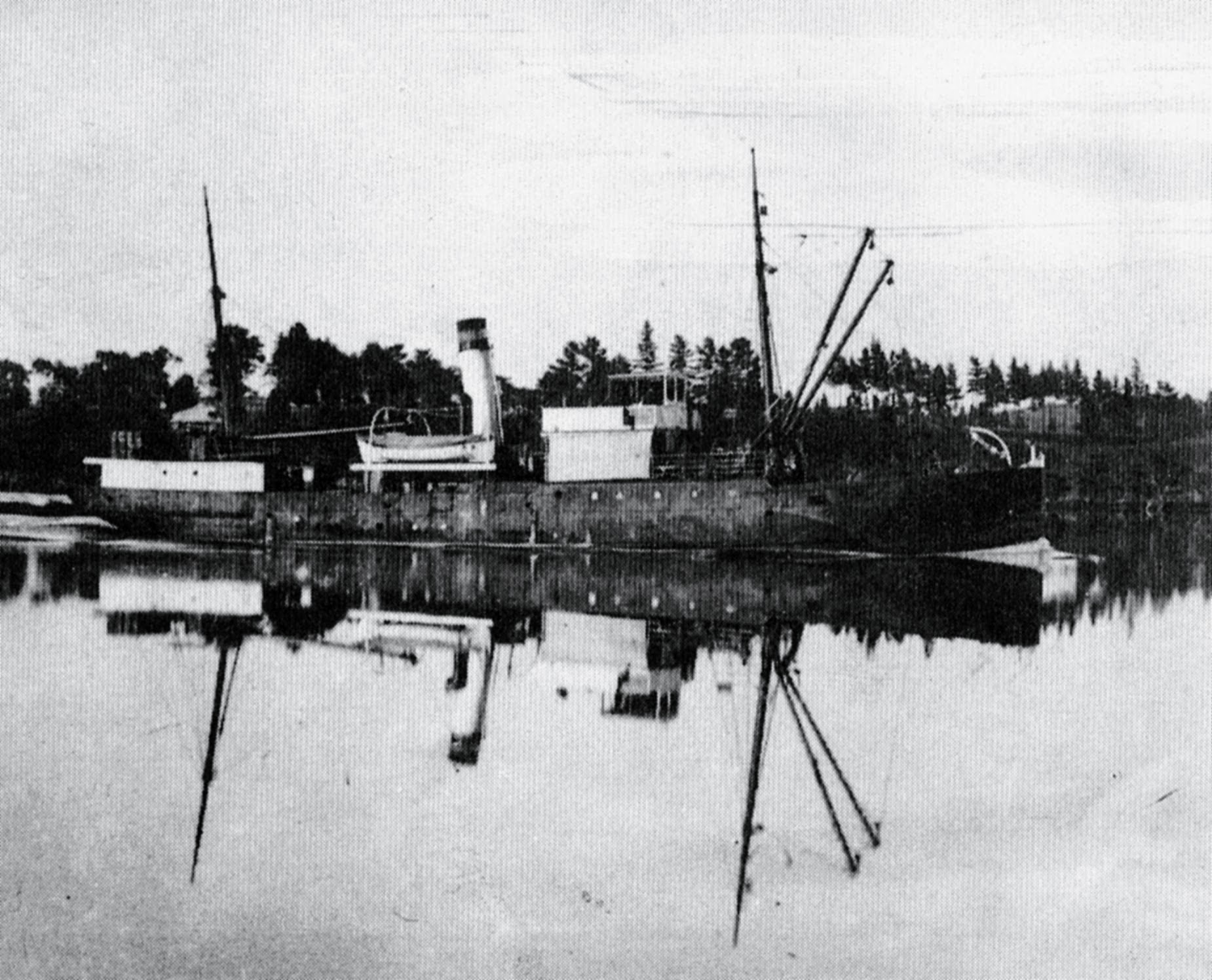 From Tudor Collins: HMNZS Claymore operating the #Auckland net boom suspended between barriers of piles on either side of the Waitematā Harbour from Maungauika – North Head to Bastion Point used as defence against enemy torpedoes, submarines and naval vessels 1943