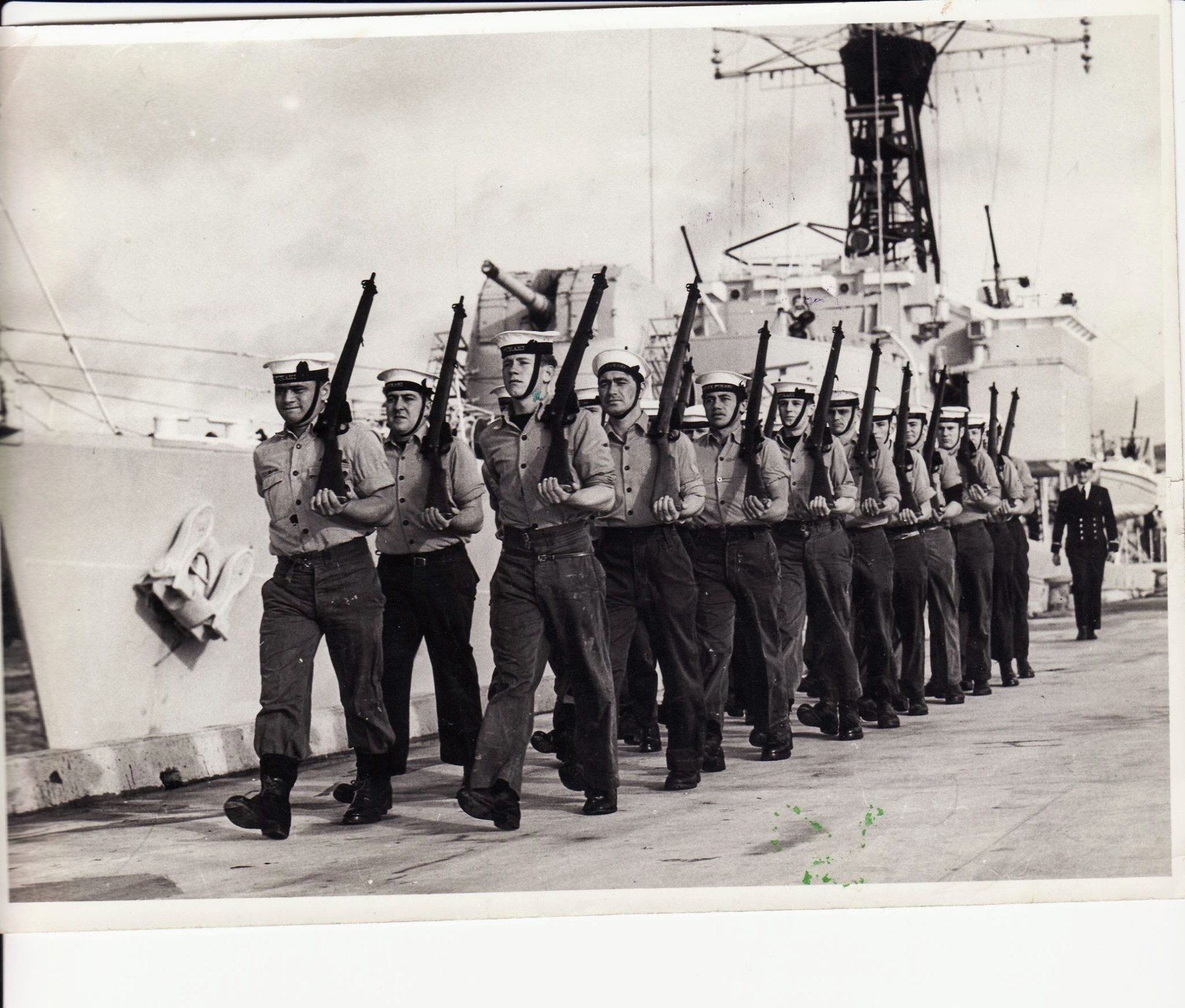 Recommissioned in December 1952 for service in the 11th Frigate Flotilla, Pukaki was assigned to detached service with the Royal Navy’s Far East Fleet 4th Frigate Squadron based at Singapore in September 1953. In January 1954 the frigate was deployed in the Yellow Sea for trade protection and as back-up to UN forces in Korea if required. In May she was transferred to Singapore for anti-terrorist operations in the Malayan Emergency, returning to Auckland in September.[1]