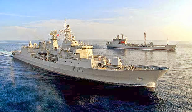 ANZAC frigate HMNZS TE MANA and fleet replenishment tanker ENDEAVOUR.