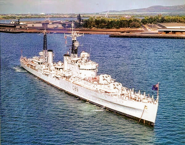 Between 1963 and 1965, she operated with the British Far East Fleet during the Indonesia–Malaysia Confrontation. She joined British vessels in making provocative passages between Indonesian Islands in an attempt to deter Indonesian attacks on Malaysia. During these deployments, her age began to show, as captains described unserviceable equipment, structural degradation, and below-deck overheating; by now, the ship was already beyond her lifespan and overdue for retirement. [39]