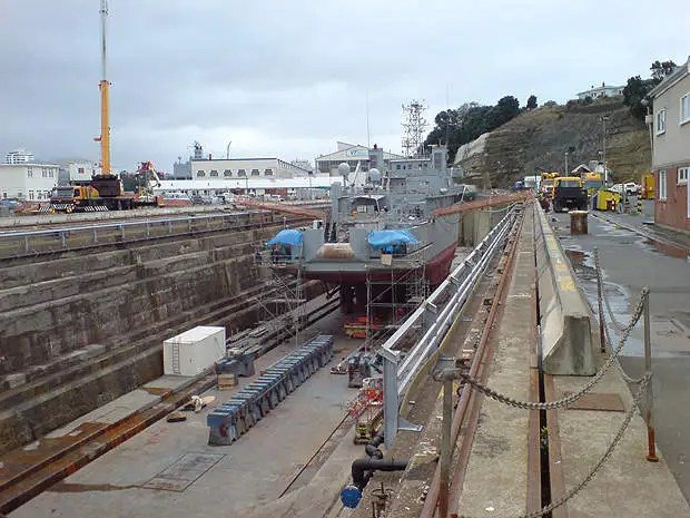 On 22 February 2011, Resolution was underway off Christchurch when the 2011 Canterbury earthquake occurred. NZ Navy Today said later : ‘..the feeling onboard was that the engines had been set in full astern with associated shuddering and shaking. It was only when a dust cloud over Christchurch was observed and chatter on VHF soon alerted the bridge team of the enormity of the disaster. With Captain Dean McDougall (CTU 654.0.1, Captain Fleet Operational Support) in an established headquarters on HMNZS Canterbury in Lyttelton, Resolution reported for duty and was subsequently called in to conduct a hydrographic confidence survey of the main channel into the Port of Lyttelton.[4]