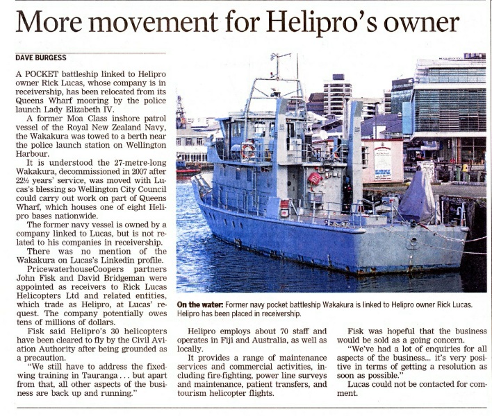 Wakakura, in company with Kiwi, carried out farewell manoeuvres on 29 November 2007, flying a paying-off pennant, in Waitemata Harbour prior to decommissioning on 11 December 2007.[1]