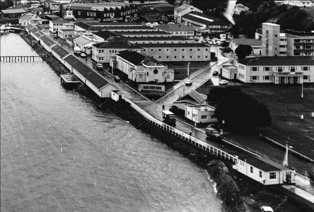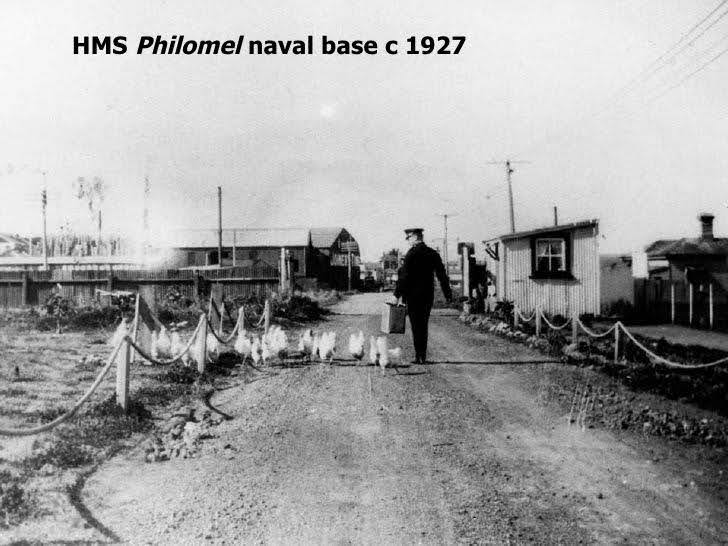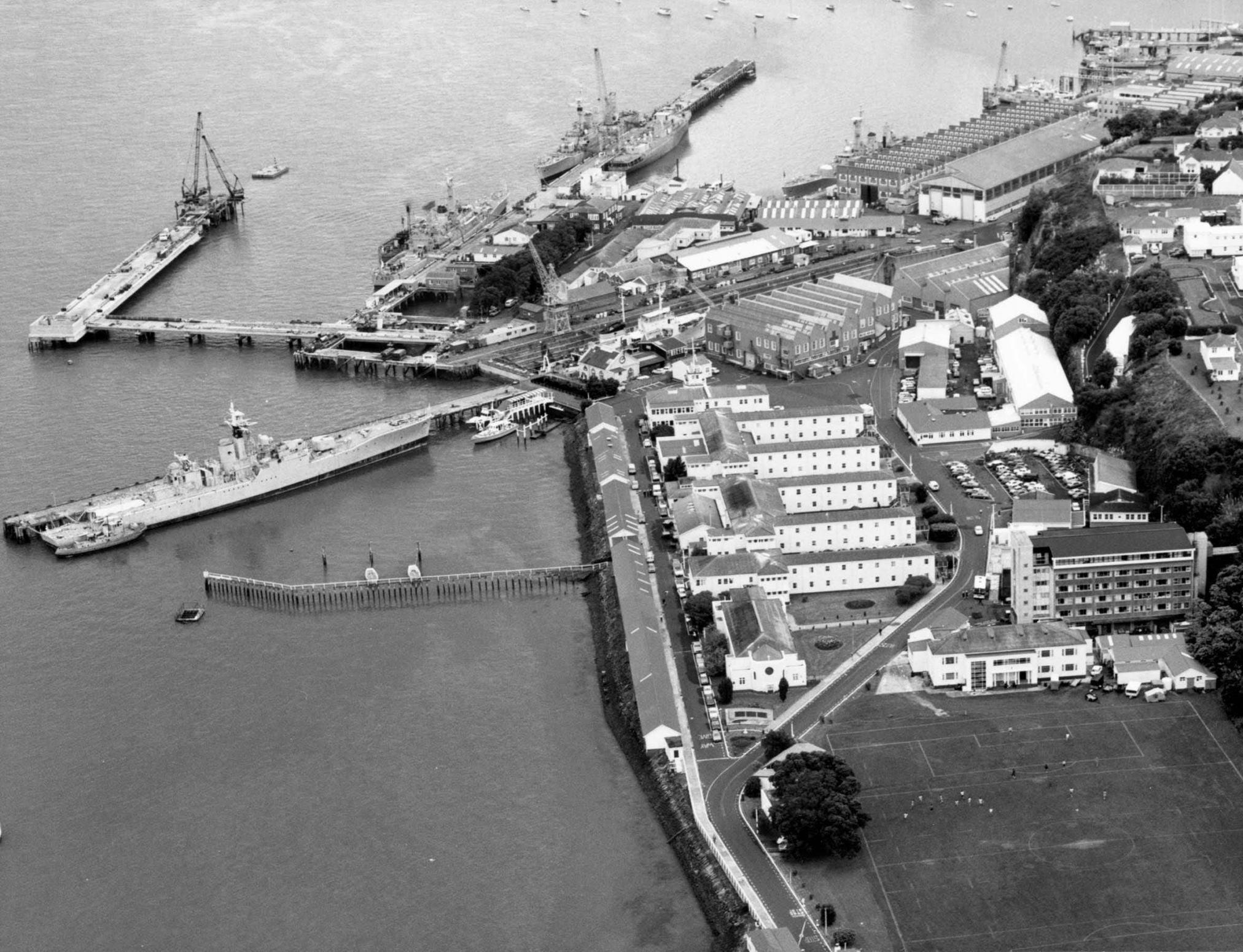 The naval base was founded in 1921 when the New Zealand Division of the Royal Navy was first formed. The old cruiser HMS Philomel, with her engines and armament removed, was moored at the Admiralty reservation, Devonport Dockyard, Auckland, and re-commissioned as a naval training base. HMS Philomel has been described as the “Cradle of the Navy.”[1]