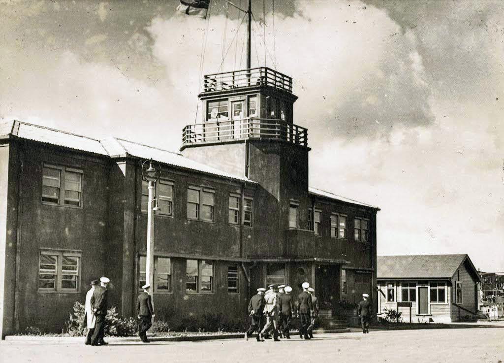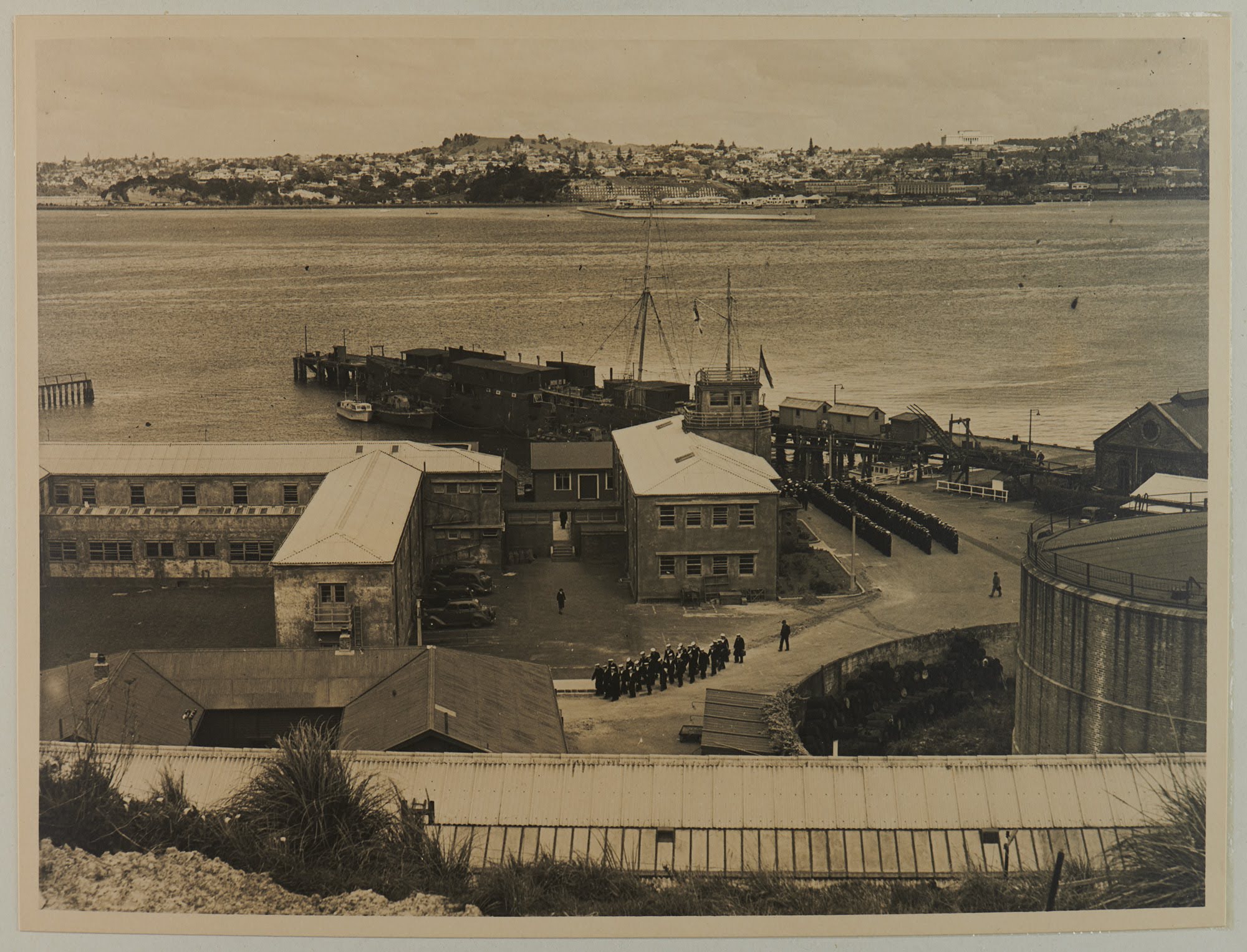 In October 1941, on the creation of the Royal New Zealand Navy, HMS Philomel was recommissioned as the training base HMNZS Philomel. Because of wartime demands for increased training many of her training functions were transferred, along with the ship’s main mast, to a new base HMNZS Tamaki situated at Motuihe Island.[2]