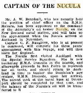 24 July 1924 the New Zealand Government budget presented to the New Zealand parliament recorded the fee for the hire of the Nucula charged by the Admiralty was £16,500 per annum