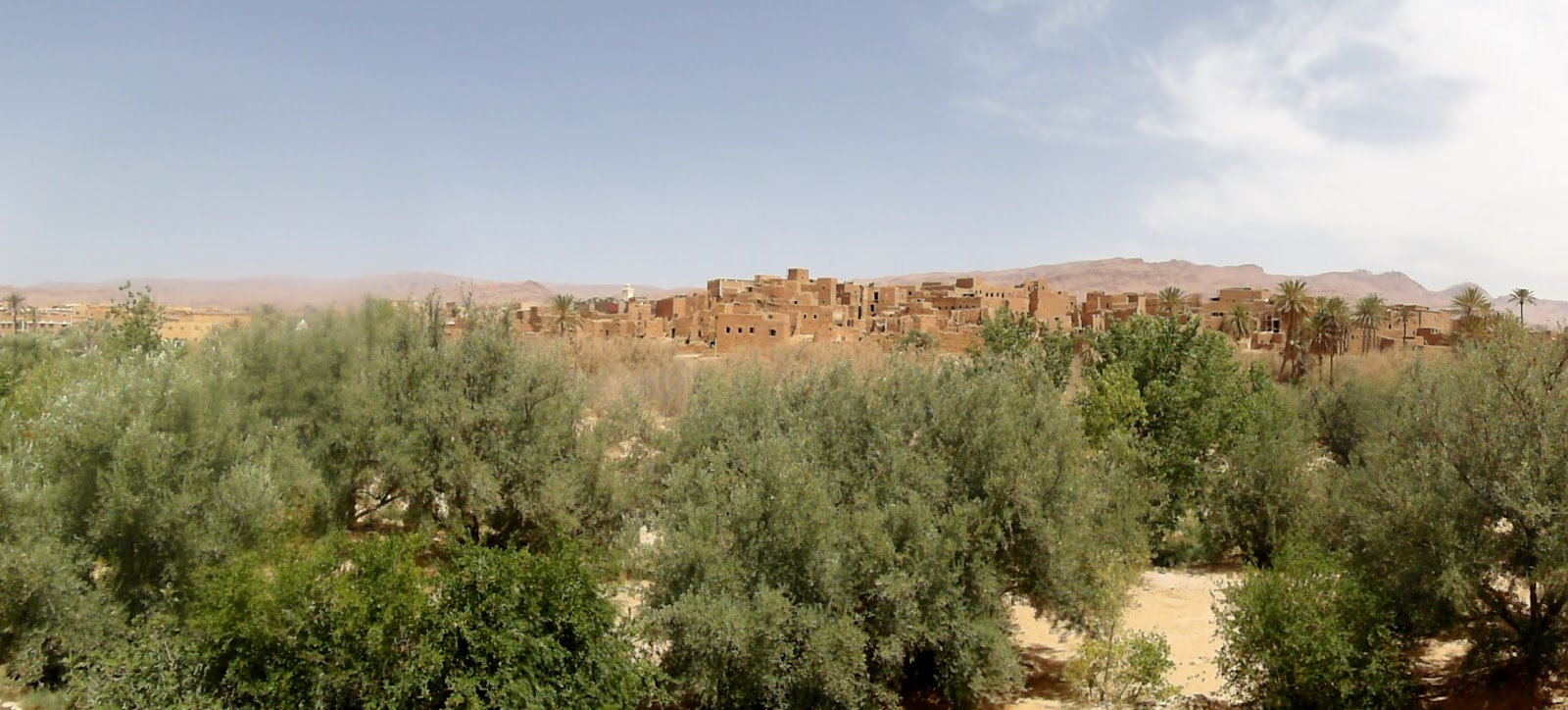 The road we now took from Fes to Erfoud goes over the High Atlas Mountains and then down again to an area on the outskirts of the Sahara. This road trip was simply breathtaking as in scenery and fascinating regarding what was going on around us. This area is sparsely populated and what people there are, are mainly Nomads. These people live a quite extraordinary life, moving from the Sahara at the end of winter to the cooler mountain ranges for summer. They live in family groups and have a flock of sheep and or goats and a couple of donkeys. The men shepherd their flocks by day and then coral them in a rock walled pen for the night. Once each week or two they will take a sheep into a town market where it will be sold to buy provisions. The women go off each day by donkey to get water and make quite a colourful sight. Their dwellings are very basic, stone affairs rooved with sheets of polythene. The government has tried to get them to send their children to free state boarding schools, but this has not been successful and so now they are employing teachers to travel around with them, living in tents and teaching as many of the children as they can. Morocco has placed education at the top of its priorities and the greatest slice of the budget is spent on it. Even so, only 30 % of women are formally educated. The greatest threat to the Nomads lifestyle is from the Leopards and Wolves which can kill their sheep and goats and this is their only source of income. Incidentally, the goats have two purposes, they provide milk and they act as guard dogs against these predators. An interesting lifestyle, probably better viewed from a tour bus.