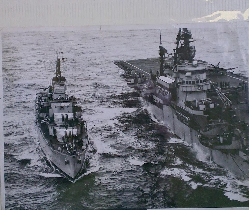 An oldie, destroyer HMS Aisne and carrier HMS Theseus.