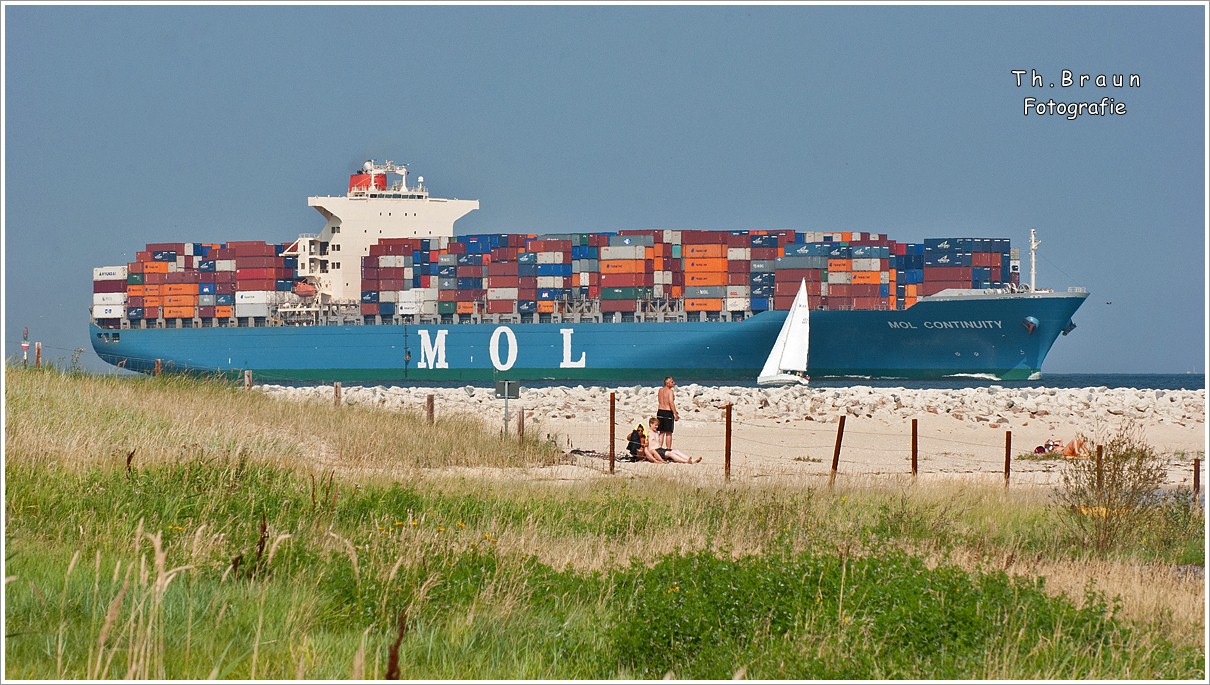 "MOL CONTINUITY", IMO: 9388352, 336m x 45,5m, maximum TEU capacity: 8110, ex APL FINLAND, 21.08.2013 Cuxhaven