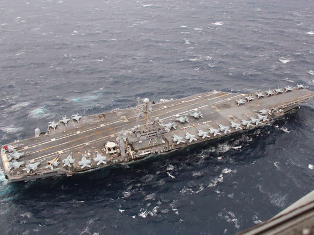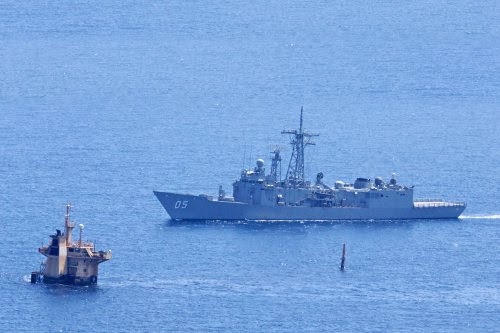 HMAS Melbourne near MV Albedo, a sunken merchant vessel, off the coast of Somalia.